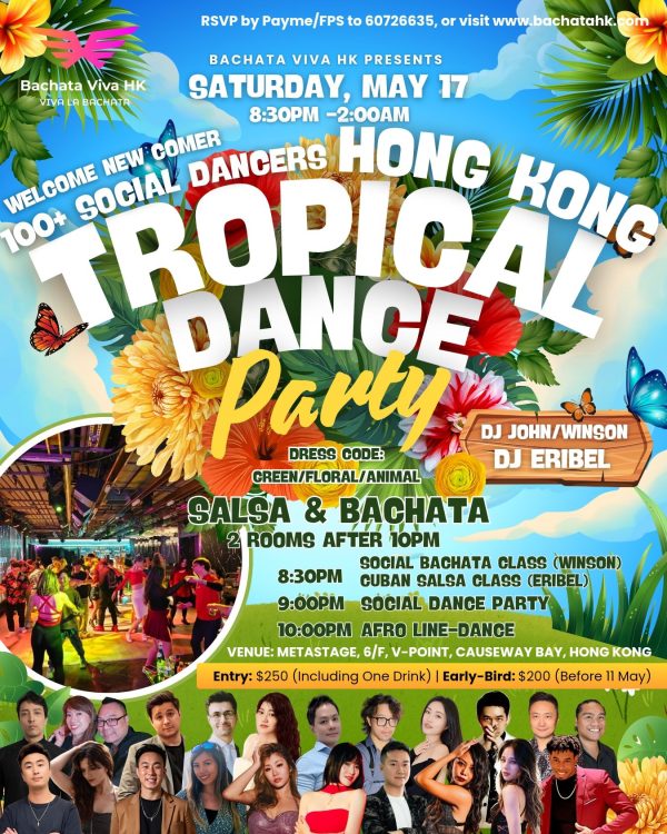 🌴🔥 Let’s Get Tropical! 🔥🌴 🌴🔥 Let’s Get Tropical! 🔥🌴 Get ready for a Salsa & Bachata takeover with Hong Kong, Guangzhou & Shenzhen’s top dance instructors! Featuring Pinky, Vily, Simon, Adrian, Quintina, and more! Over 100+ social dancers, electrifying Afro Line-Dance, and beats from DJ John, Winson & DJ Eribel—all at Metastage, Causeway Bay!…